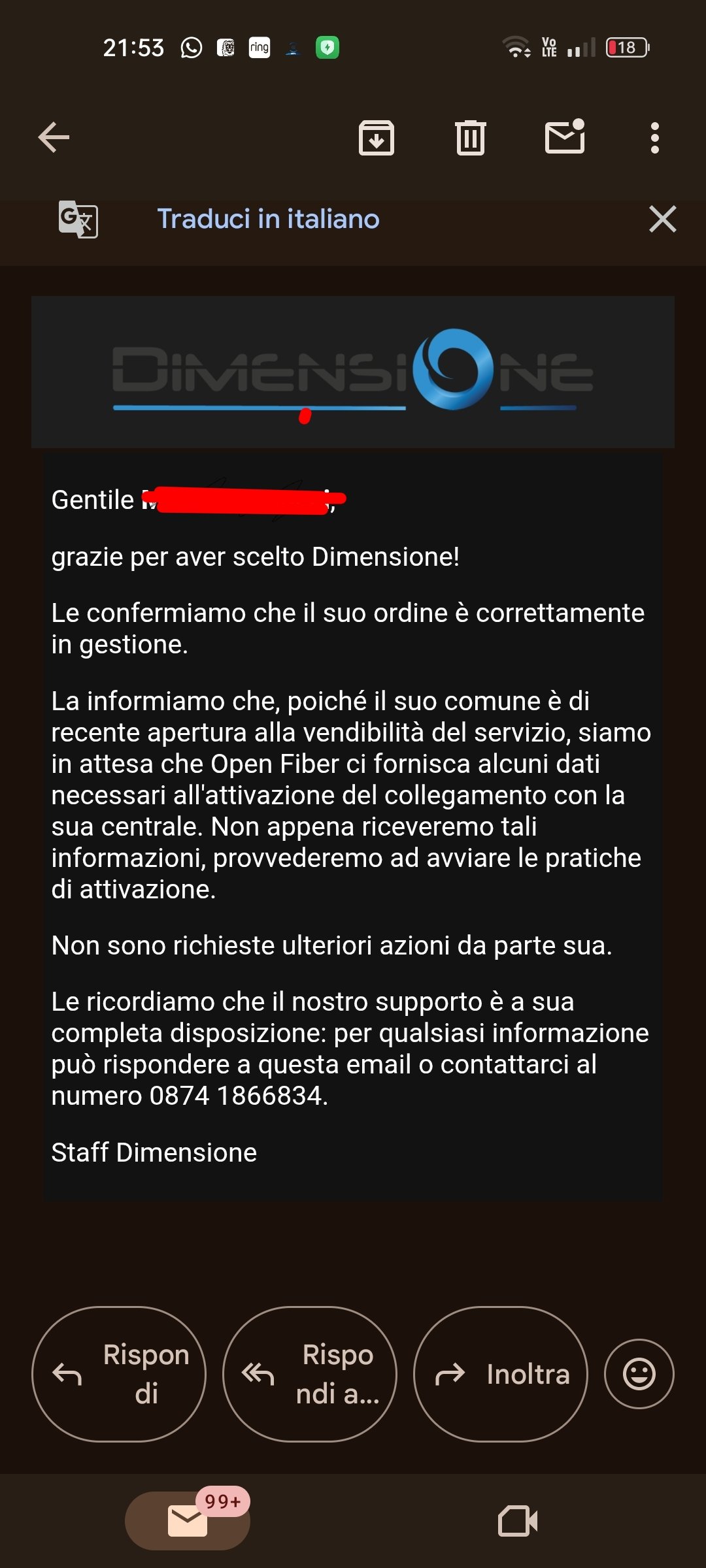 Le ricordiamo che il nostro supporto è a sua completa disposizione: per qualsiasi informazione può rispondere a questa email o contattarci al numero 0874 1866834.