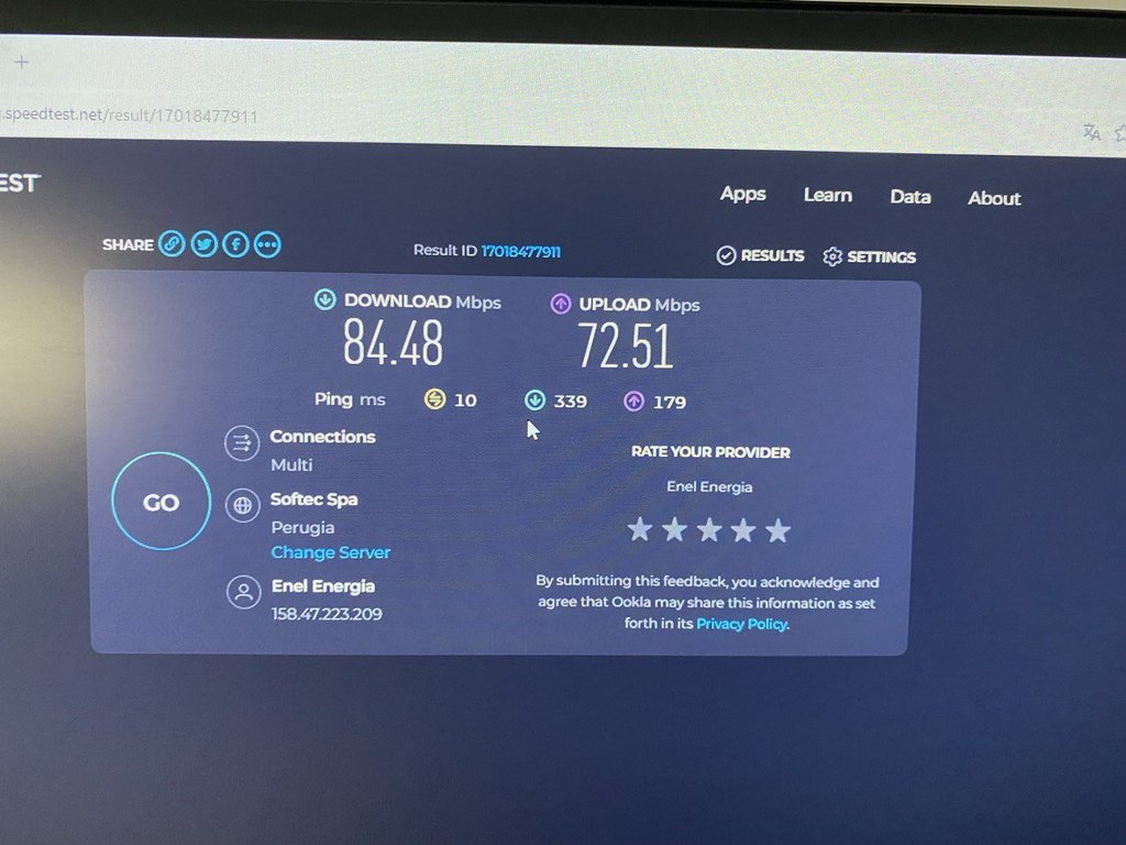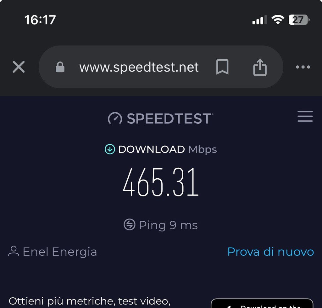 Da smartphone (foto) lo speed test ogni tanto mi da risultati sui 900mbs/s, ogni tanto sui 400/500;