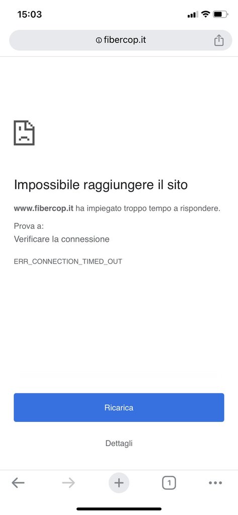 Ciao ragazzi, è possibile che il sito Fibercop sia stato oscurato al mio indirizzo IP? Mi spiego meglio, da circa 6 mesi hanno montato un ROE Fibercop nel reparto contatori del mio palazzo, ma da allora fino ad oggi non risulta attivo nulla al mio civico, tant’è che ogni giorno verificavo di persona sul sito Fibercop per vedere se ci fossero novità o comunque il mio civico venisse censito, ma nulla… ma la cosa strana viene 2 settimane fa quando provando a collegarmi sul sito Fibercop con il mio wi-fi di casa non mi carica più, avrò pensato che magari il sito era in manutenzione, però questo K.O. durava troppo e per curiosità ho provato a caricare il sito con la connessione dati del mio cellulare, e miracolosamente si è caricato perfettamente! Ho provato anche ad accedere dal computer al sito Fibercop ma sempre sotto la mia rete wi-fi e non carica, mentre invece se imposto una VPN o collego il mio hotspot mobile al PC carica tranquillamente. La mia domanda ora è, possibile che stufi dei miei continui e perenni controlli abbiano oscurato il sito al mio indirizzo IP? Perché lo fa solo con la mia rete wi-fi, con altre reti wi-fi o con una VPN il problema sparisce… vi allego