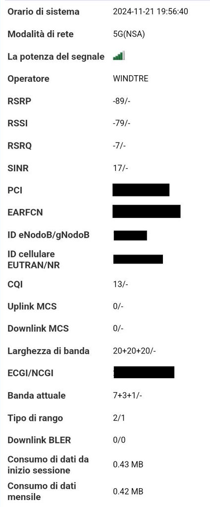 Sicuramente le prestazioni sono migliori con WindTre, tuttavia mi lascia perplesso il risultato in 5G, vi allego i dettagli della connessione, magari notate qualche cosa di strano
