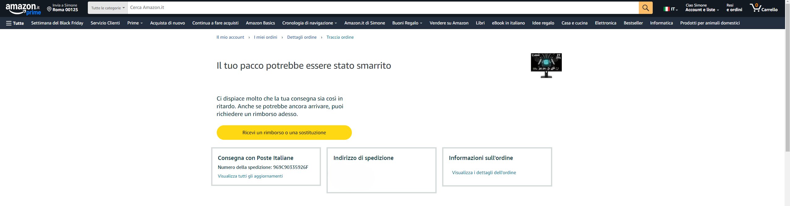 nel mentre ho provato a contattare il corriere a cui era stata affidata la spedizione (SDA poste italiane) morale della favola a loro non esiste nessun tracking e non possono aiutarmi, mentre su amazon la spedizione è rimasta ferma in transito il giorno 15/11.