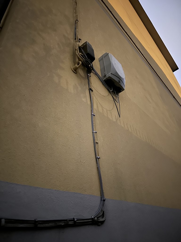 Ecco il pte, molti cavi vanno giù e un paio salgono su, uno di quelli passa sotto la mia finestra e vanno nel pte del palazzo accanto come ho mostrato ieri nelle foto.