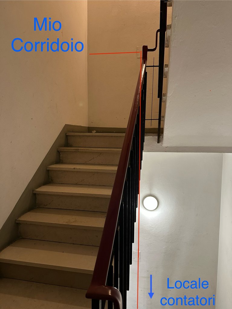 Qua invece nel locale contatori fino al sottoscala…dove c’è la punta della freccia blu è lì che sono arrivato con la sonda.