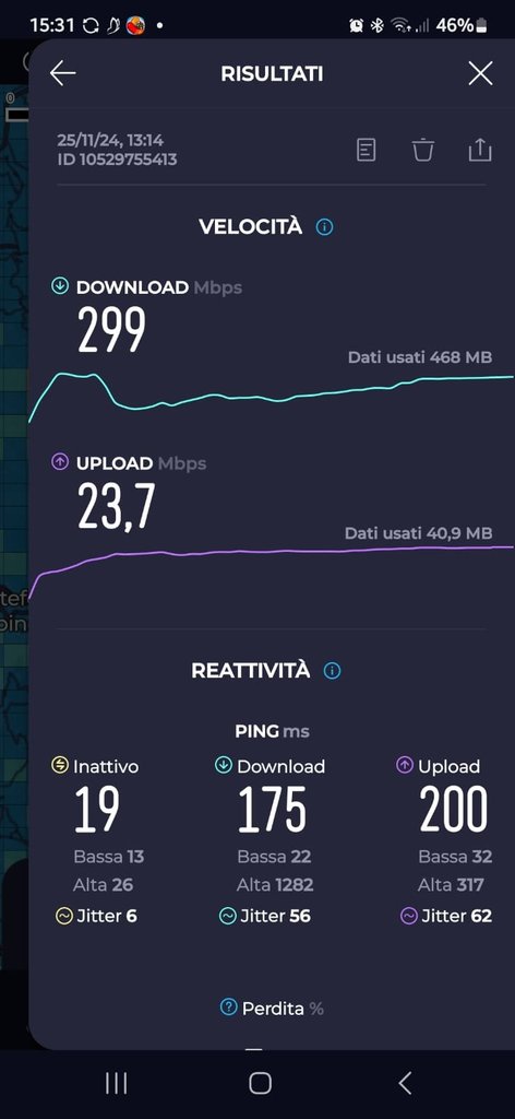 In pausa pranzo ho provato con il mio cellulare (Sim Vodafone) ed è arrivato a 299 mb in 5g, ma andando su Vodafone ed inserendo l'indirizzo mi da la zona come non coperta...