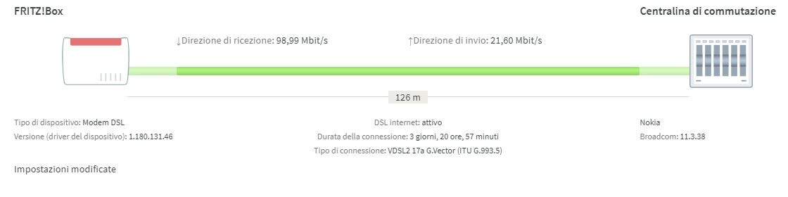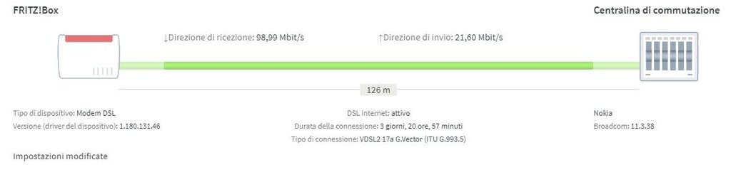 QRDG Mi aggiungo anche io con il frankenstein: Notare la diafonia... spero che si saturi in fretta così forse (magari) lo cambiano con uno che supporta il 35b, e so che sono OT, però @GiovanniCriscione se ti do il CLLI dell'armadio mi vedresti a che percentuale di riempimento è? perché l'altro giorno hanno attivato un nuovo cliente.