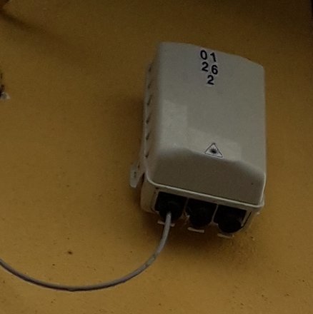 sto comprando una casa in campagna e il proprietario mi dice che hanno appena portato la fibra "aerea" (passando sui pali del telefono). La scatola di raccordo dovrebbe essere questa, il cavo in ingresso non mi pare una fibra ottica...: