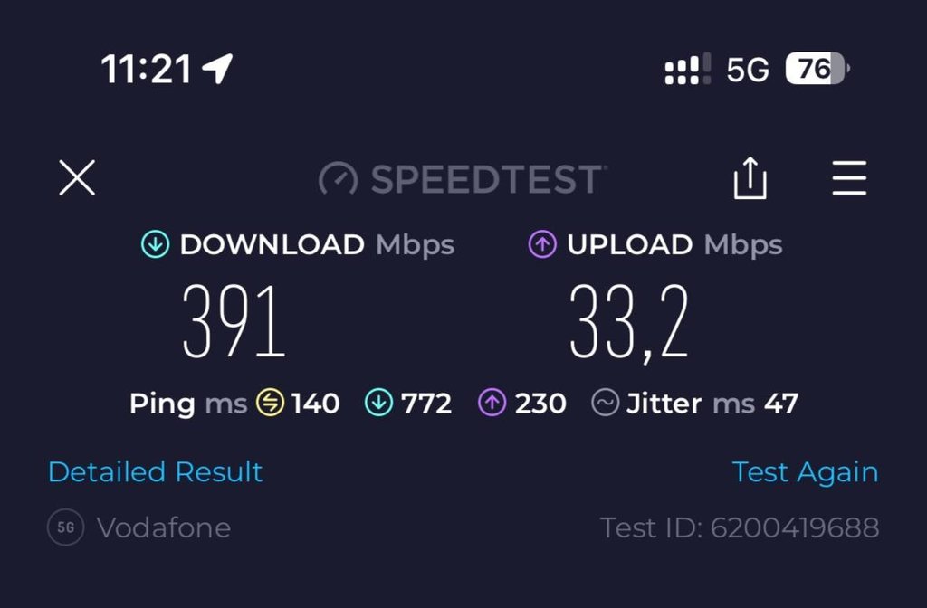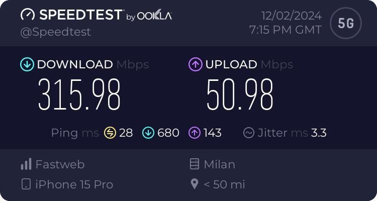Ho fatto anche degli speedtest negli ultimi mesi (senza sapere a quale BTS fossi connesso), i due risultati piu' promettenti sono: