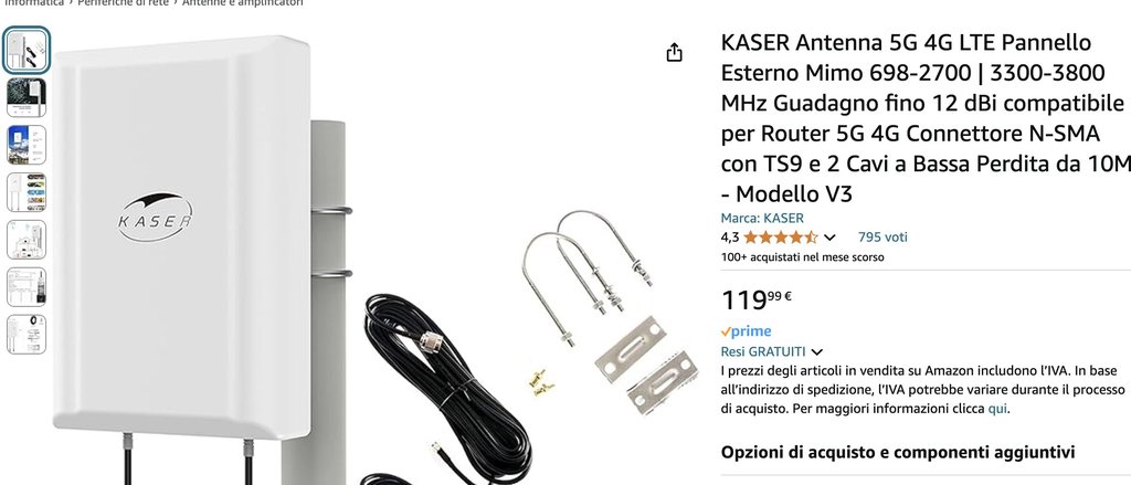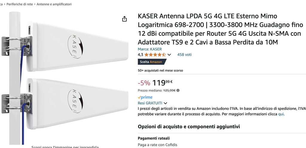 Pensavo di mettere su un sistema con Modem Router 5G TP-Link Archer NX200 e un'antenna esterna da piazzare sul tetto, li' ho dato un'occhiata su Amazon e le piu' vendute e ben recensite sono: