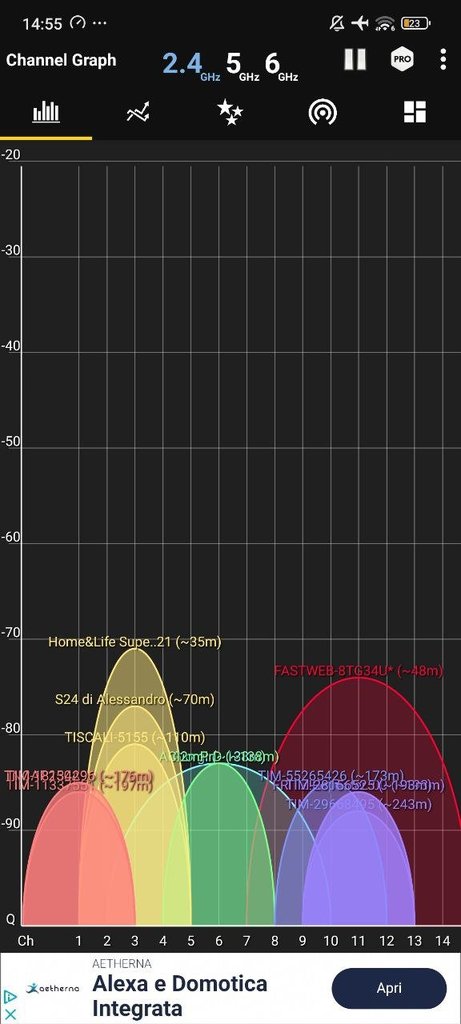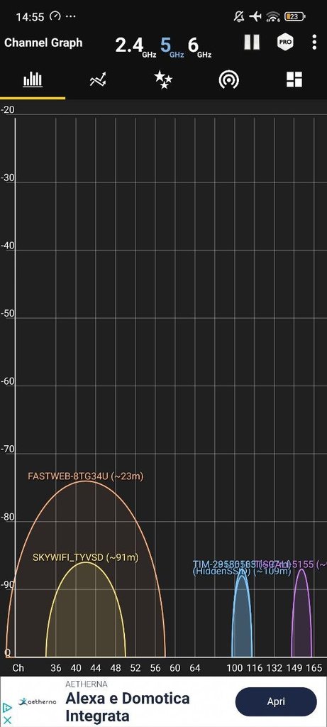 Ah allego anche screenshot di wifi analyzer, in base a questi ho scelto i canali che penso siano i migliori ma non so se conviene lasciare su "auto" le impostazioni del router. ieri non c'era quel skywifi