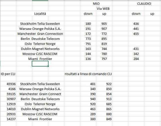 non ho resistito ed ho fatto degli speedtest da ookla via web