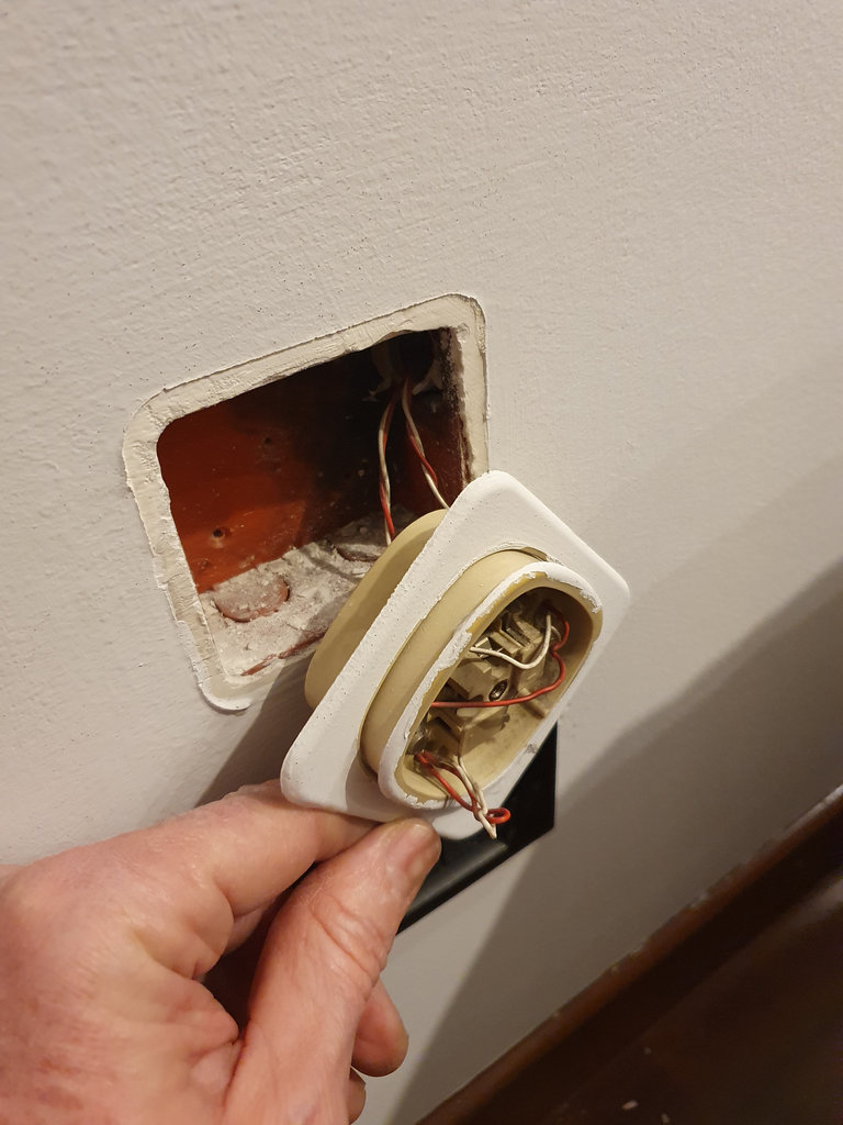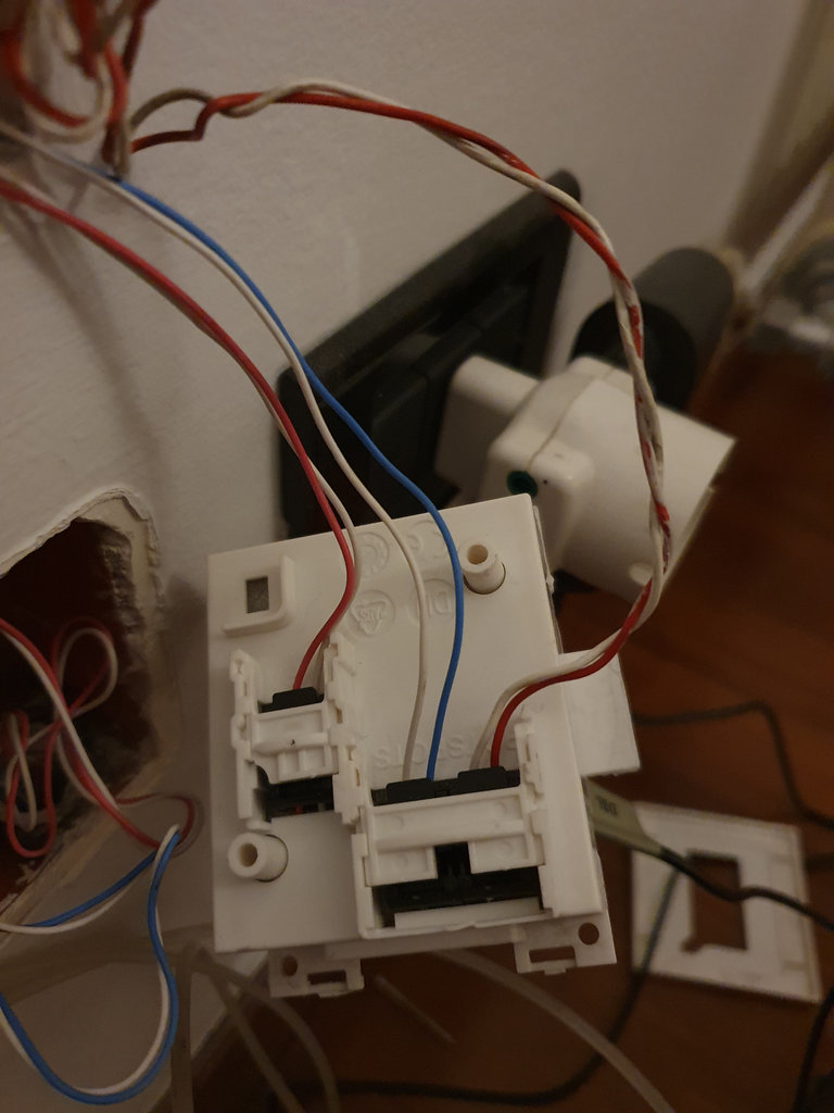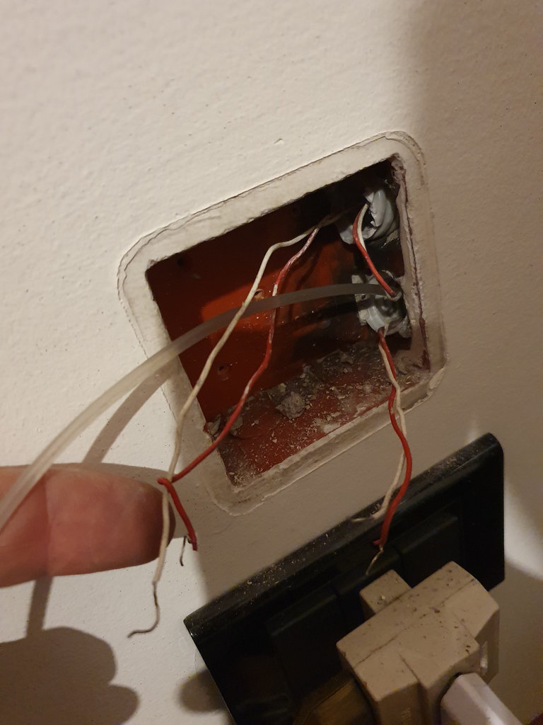 Poi da questa presa parte la linea telefonica (4 fili, 2 rossi e 2 bianchi) che vanno al piano di sopra su delle prese tripolari.