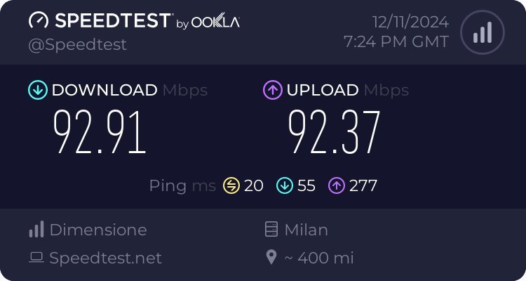 Ho attiva una linea FTTH (OF Aree Bianche) con Dimensione, profilo 2.5Gb. Da qualche giorno se faccio speedtest la velocità non supera i 90Mbps, volevo capire cosa fare per capire se il problema possa essere lato mio o lato OF/Dimensione.