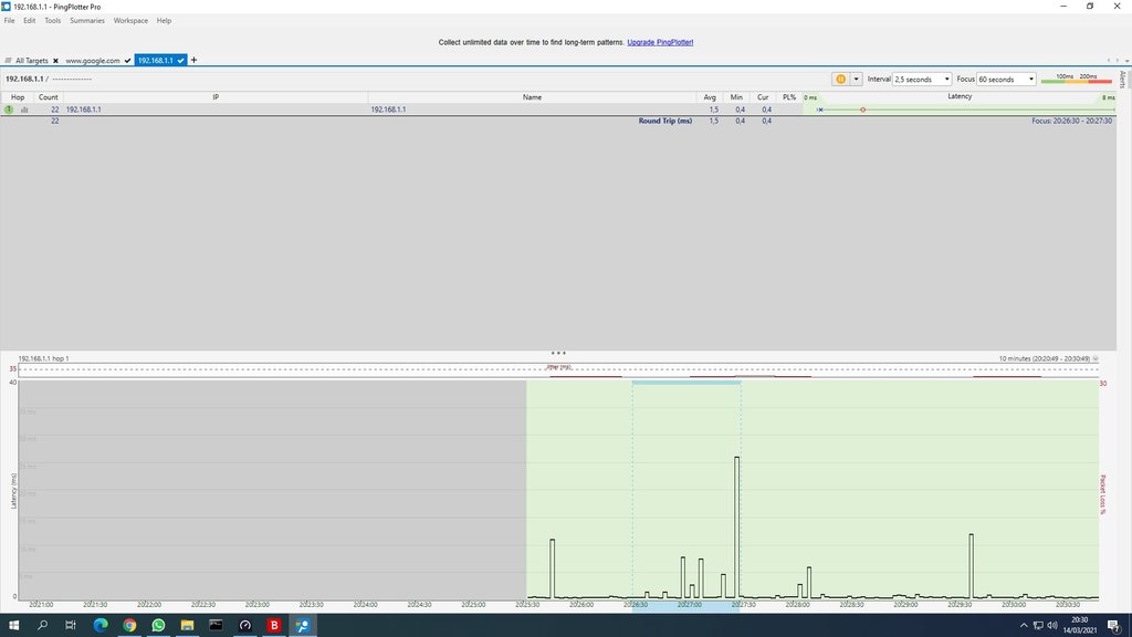Poi ha ricominciato nuovamente con il jitter (vedi screen allegato - pingplotter)