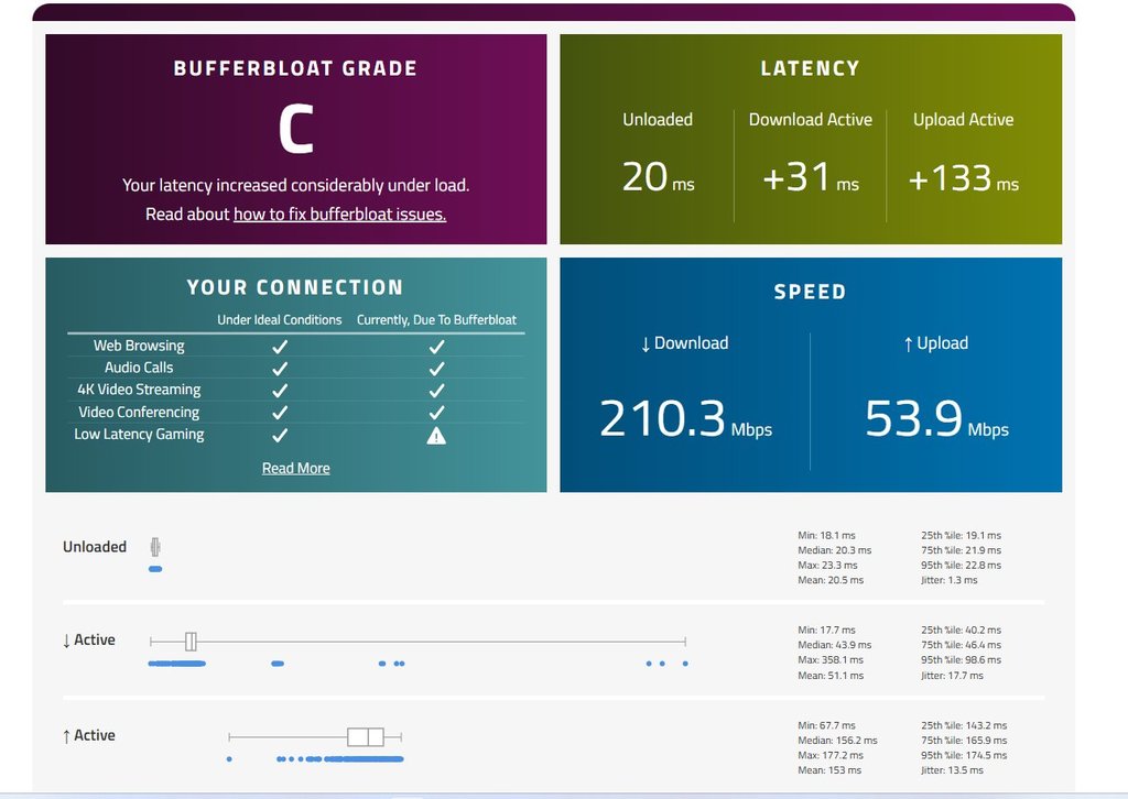 Sotto con un Asus DSL AX82U con FW Merlin WRT con QoS attivato e impostato su cake