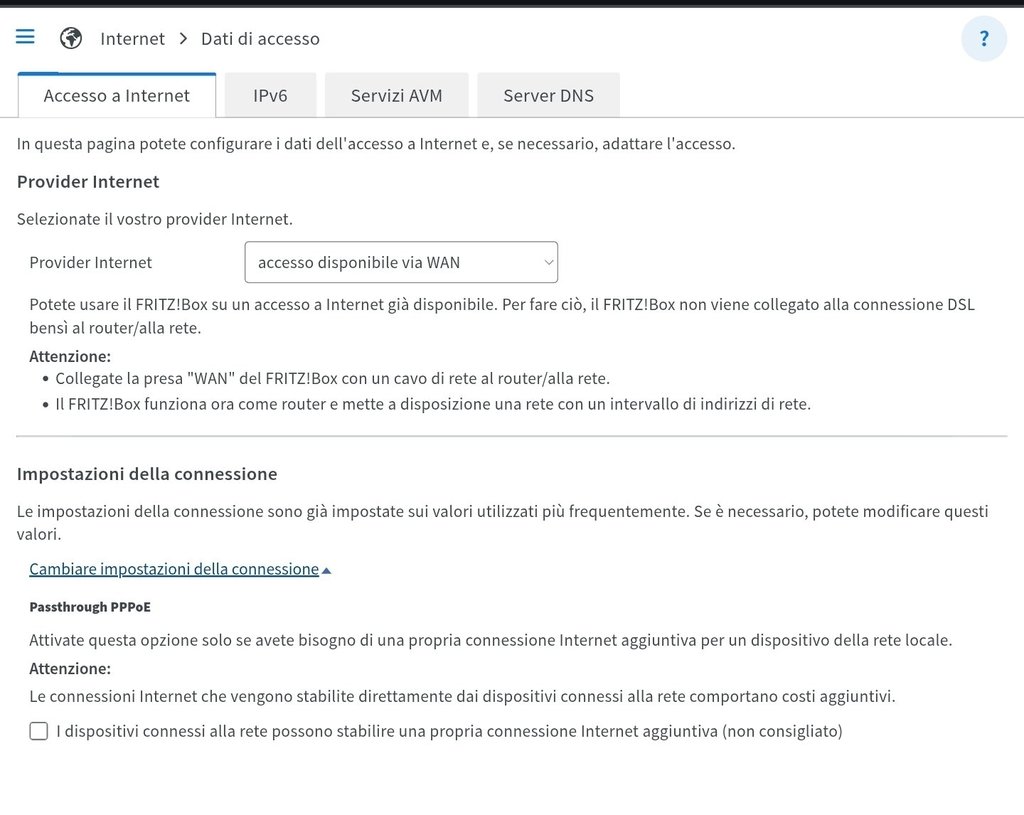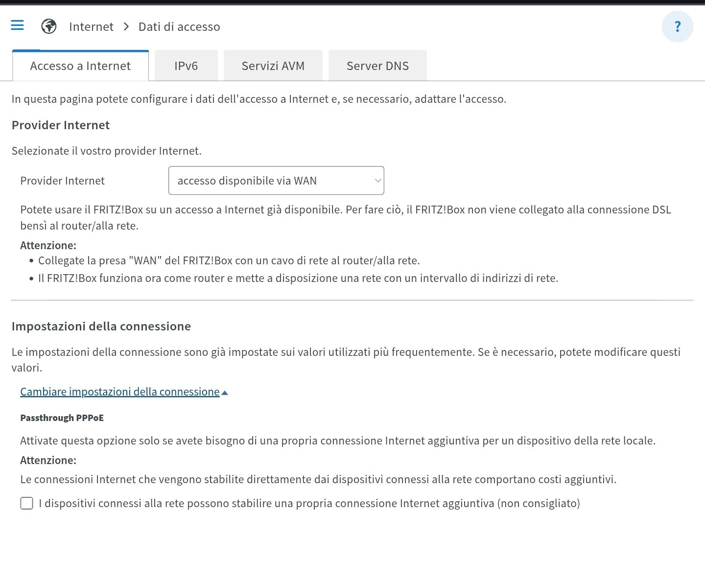 Delle schermate Fritz manca quella Accesso ad Internet.