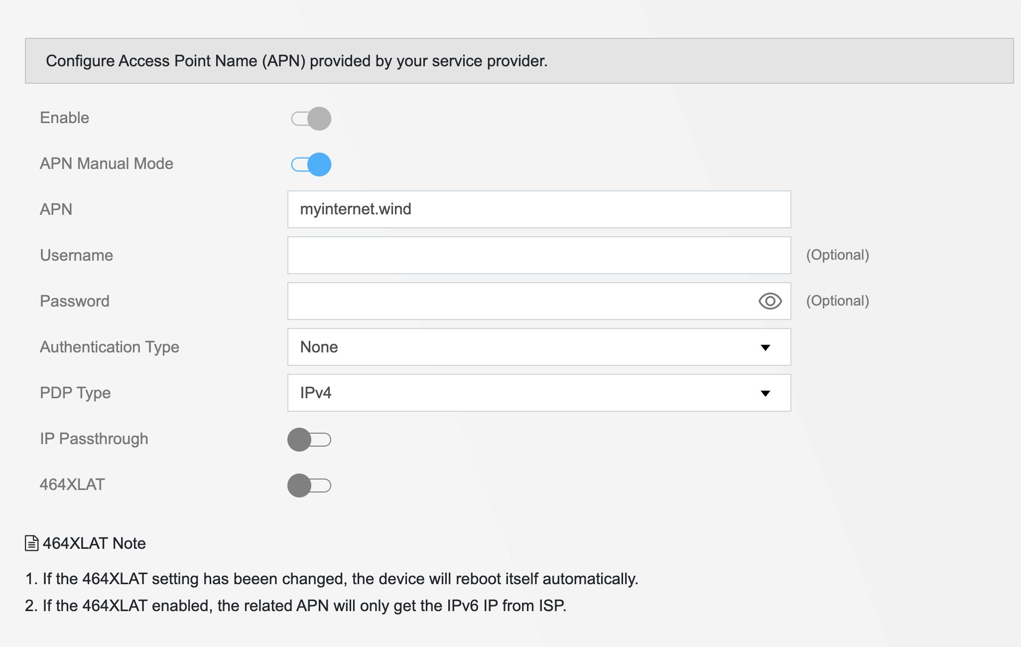 Currently, my NR7302 is set up in VLAN2 with APN2 in IP Passthrough mode and APN1 disabled. Previously, I also tried IP Passthrough with APN1 as well as the standard router mode.