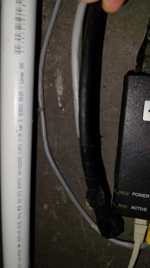 In pratica hanno estratto gli 8 fili dal cavo da esterno e li hanno "giuntati" con il nastro isolante con un secondo connettore RJ45 preso da un cavo di rete stock perchè "non avevano i connettori da esterno giusti".