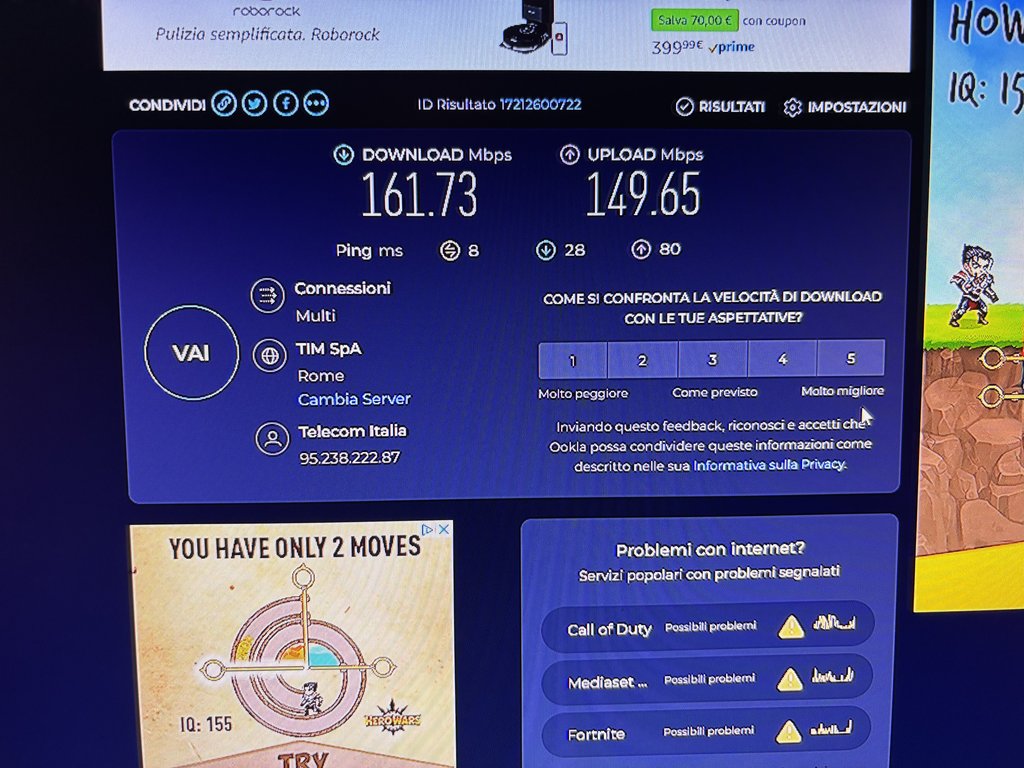 Ieri ho montato i powerline e la velocità che arriva a PC e PlayStation è quella che vedete qui sotto.