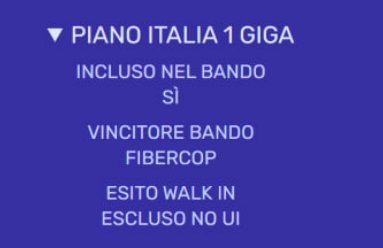 mark129 Il civico dell'OP non risulta nemmeno a consultazioni infratel (e già qui ci sarebbe un problema) il civico comq adiacente (il suo è un BARRATO - es 31/A , e abbiamo preso in esame il 31) che è lo stesso stabile e molti altri nella via sono stati esclusi dal P1G Fibercop e categorizzati come "NO UI", visto che l'op mi aveva precedentemente contattato su telegram ho avuto modo di fare queste verifiche e gli ho consigliato come muoversi per provare a seganalare la cosa a infratel (anche se con poche speranze di recupero della copertura)
