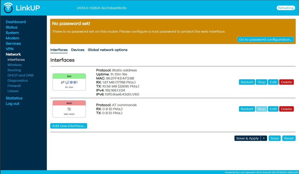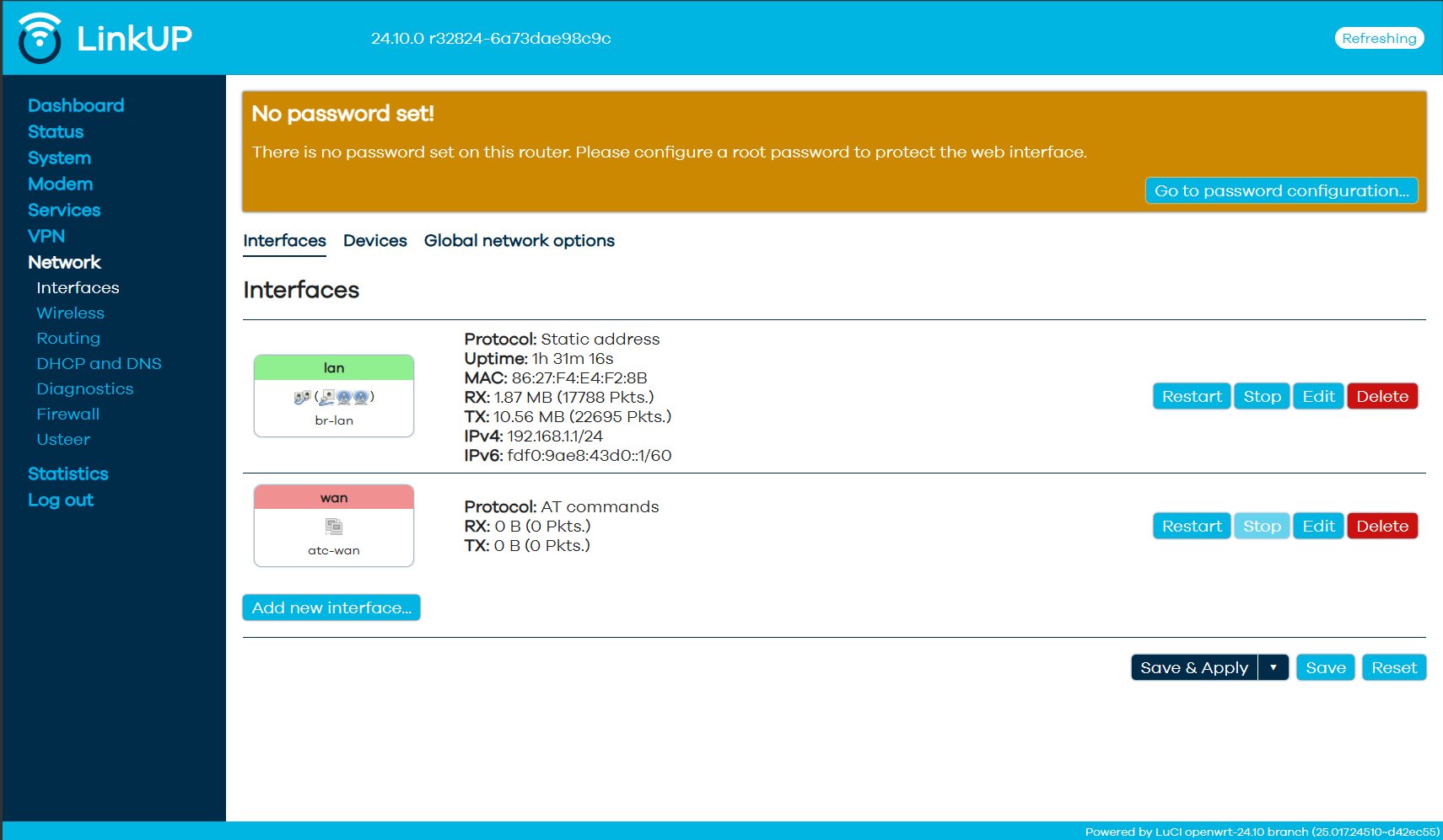 ue Apr 22 16:57:58 2025 daemon.notice netifd: wan (20838): Initiate modem with interface eth2