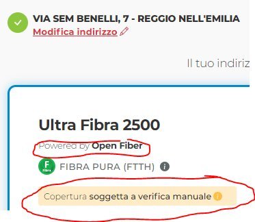 Il civico ricade sotto una verifica manuale per la rete OpenFiber, significa che potenzialmente vicino a te ci sono altri civici già connessi da OpenFiber e forse si potrebbe valutare, tramite piccoli operatori, di richiedere un censimento per il tuo civico.