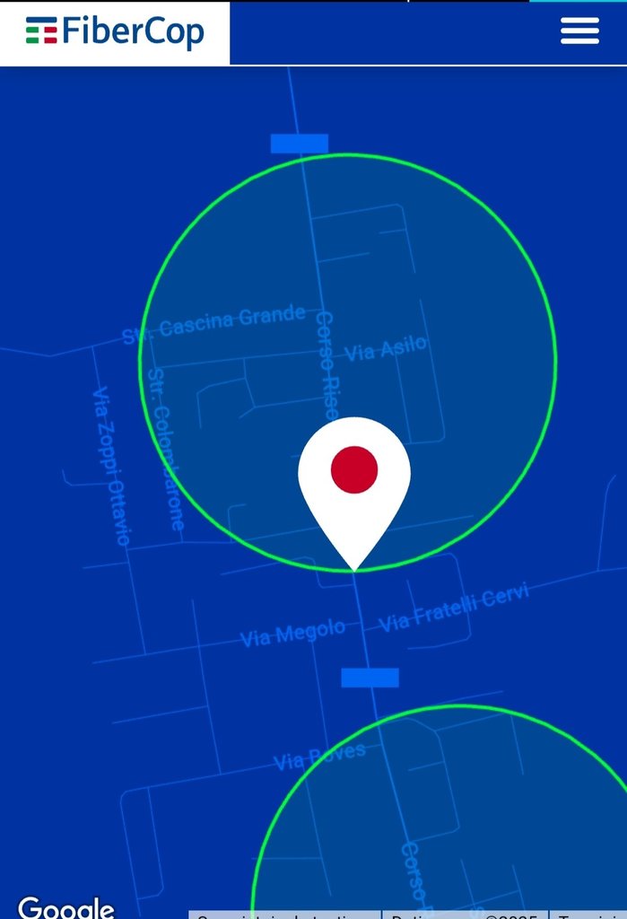 Abito nel quartiere di Vignale a Novara, in corso Risorgimento 363, come vedete dalla foto, il mio civico si trova esattamente sul confine del cerchio verde e il sito Fibercop mi restituisce come risultato che il civico 363 non è coperto mentre inserendo un paio di civici più avanti risulta in "stiamo arrivando". Ora, il mio civico è un complesso condominiale formato da 3 condomini se guardate nell'altra foto presa da Maps. I lavori per la posa della fibra sono terminati verso circa a Ottobre scorso, e proprio a fianco del cancello d'ingresso sono stati posizionati dei tubi neri che spuntano verso l'alto dal terreno, percui mi immagino che una torretta sarà proprio posizionata lì. Vorrei quindi capire per quale motivo sul sito non risulta in "stiamo arrivando" il mio civico.