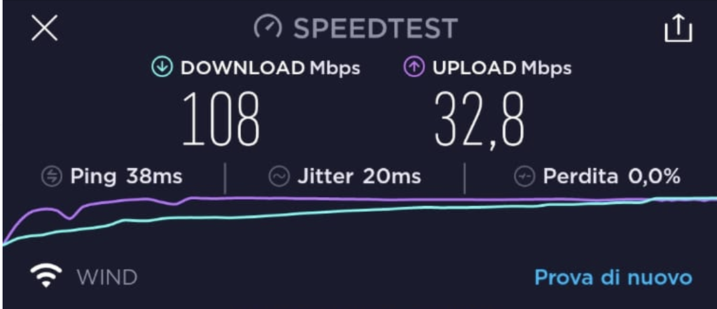 Così facendo, la connessione di casa è passata dai 4/5 mbit di adsl in rete rigida telecom a questo: