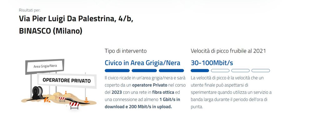 - Secondo il sito Bandaultralarga dovrei essere coperto dal 2023,