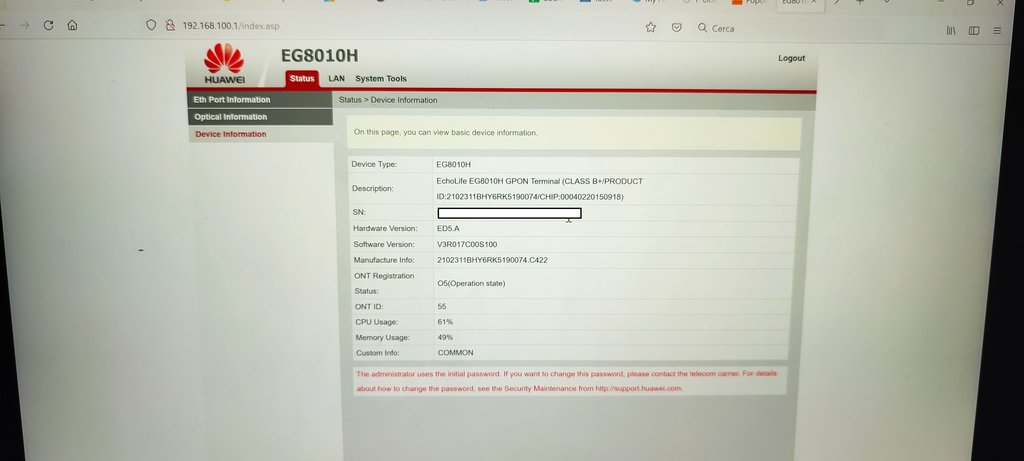 Ho già il media converter TpLink, ma la velocià non va oltre i 500-550 mb in download. Il problema sembrerebbe purtroppo che l'OLT Nokia richieda altre info rispetto al semplice seriale GPON utilizzabile su ONT Huawei (info aggiuntive del tipo stringa software del SFP, mac address del SFP o altro).