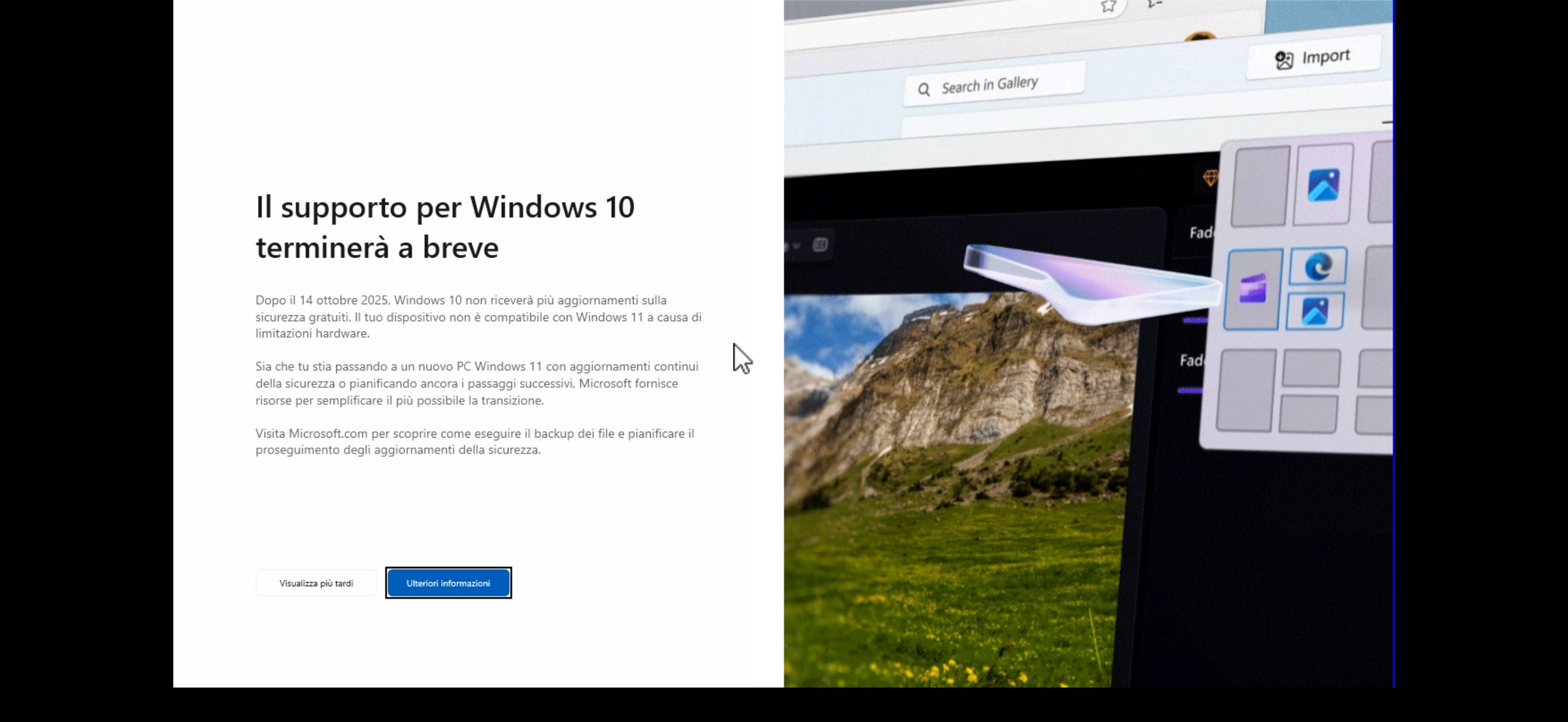 Andrea786 giuse56 se il pc non è aggiornabile perchè il processore non è compatibile con la POPCNT ce l opzioni Microsoft Reward che con 1000 punti di ricerca ( praticamente 10giorni di ricerca su Msn ) puoi sbloccare gli aggiornamenti fino al 2026 senza pagare https://www.windowsblogitalia.com/2025/09/supporto-windows-10-ultimo-mese/