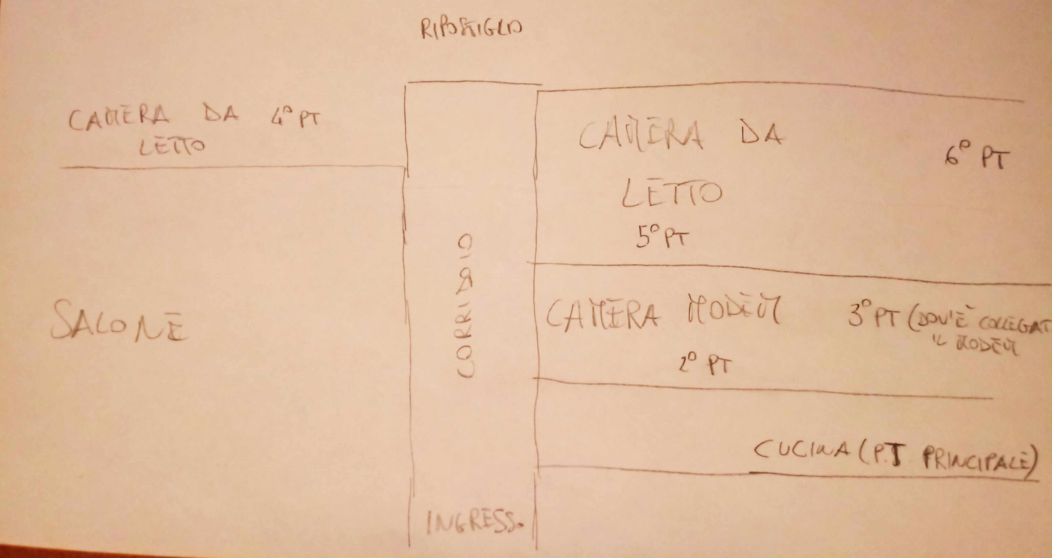 Quindi dovrestri con una sonda andare alla PT1 e capire se una delle due canaline (l'altra dovrebbe arrivare alla PT2) "esce" da casa tua, insomma va in qualche cassetta nel vano scale.