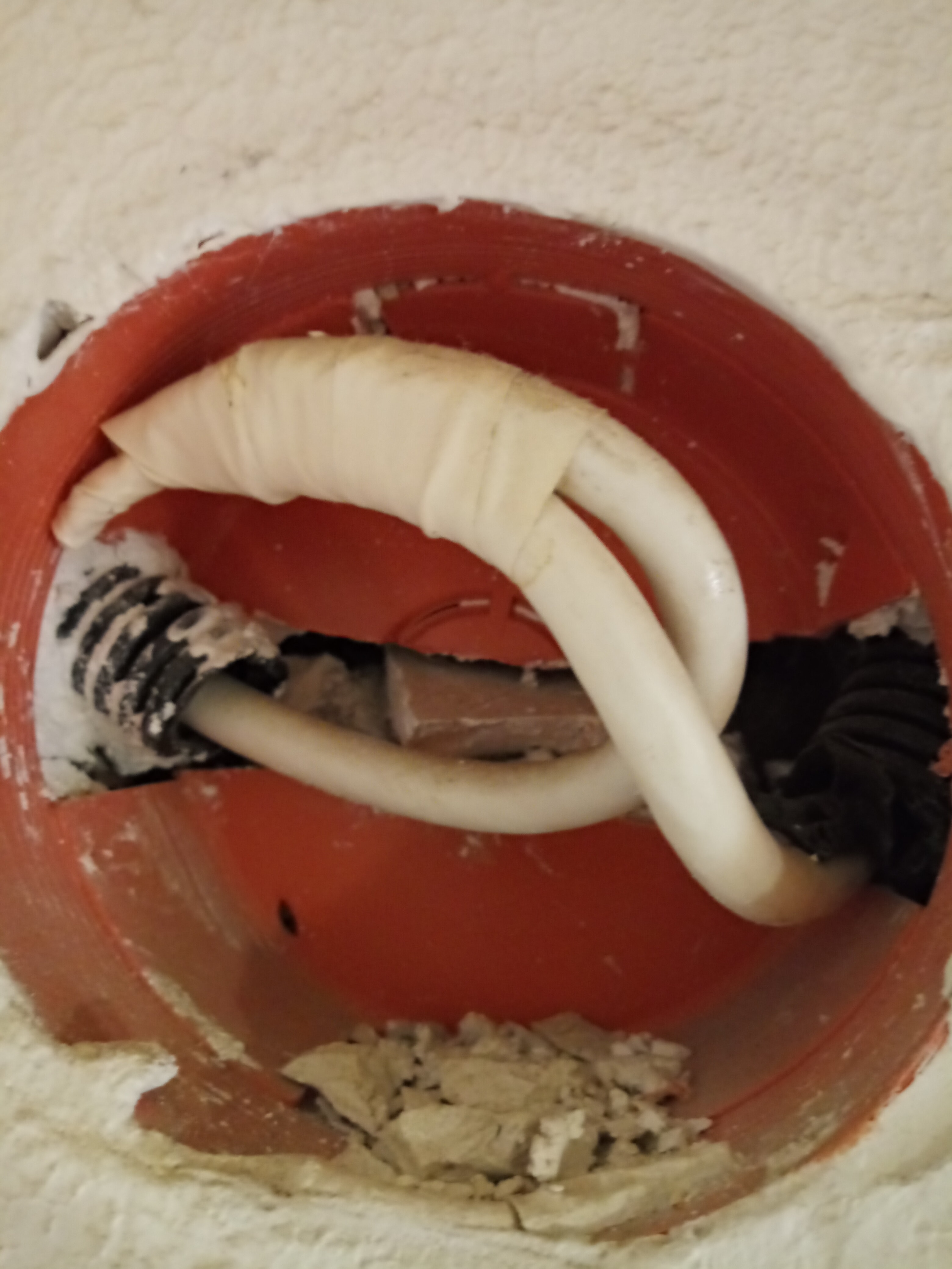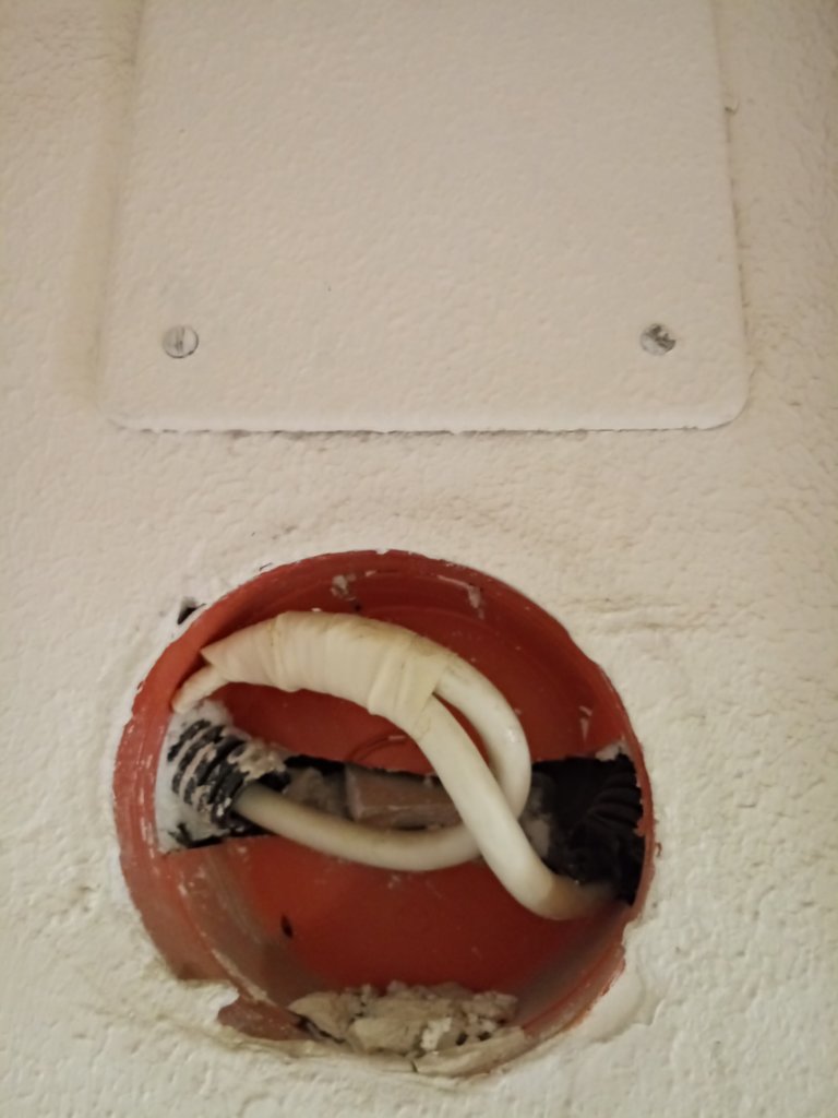 filtrofibra edofullo Ti rispondo con una foto più chiara Come vedi è stato messo del nastro isolante a delle estremità e poi l'altra parte continua nel muro. A occhio e croce sembra proprio che corra lungo il corridoio per poi sbucare perfettamente nella mia camera alla PT2.