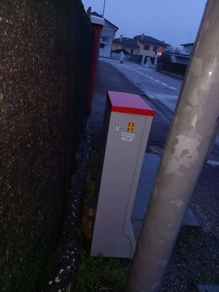 Allego immagine colonnina fibercop sul vialetto davanti all'abitazione che teoricamente dovrebbe portare la fibra.