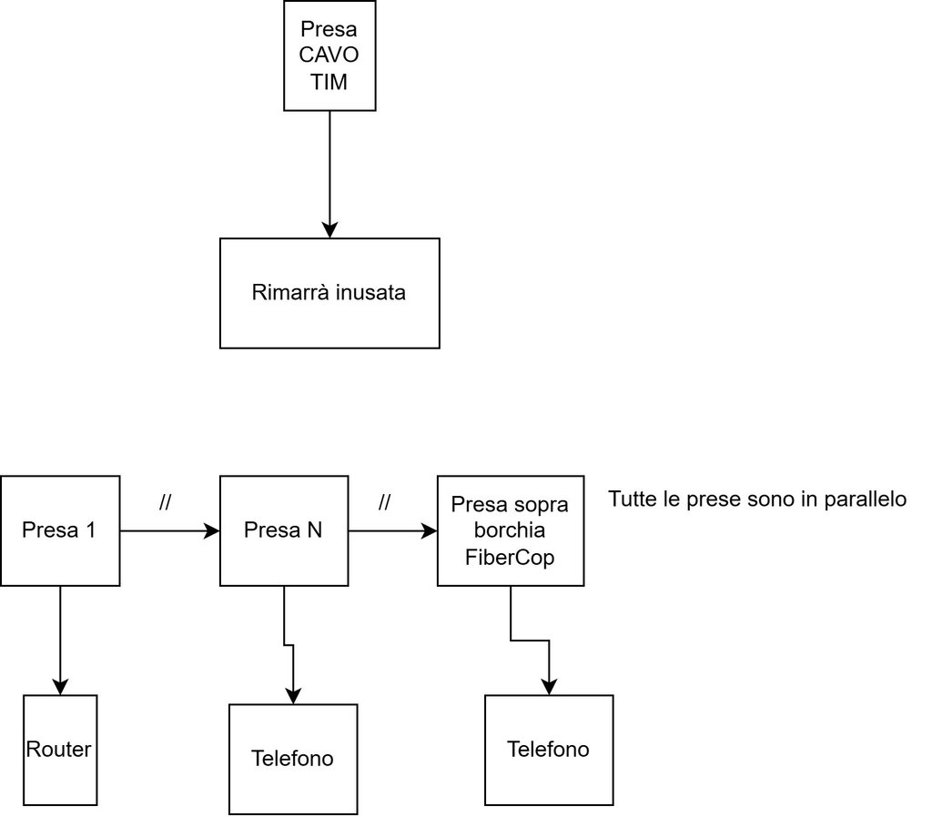 Oggi, sono venuti i tecnici Fastweb a predisporre la fibra da 1gb. Fino a qui tutto ok, navigo perfettamente. Tuttavia il dubbio che mi è venuto riguarda la linea telefonica: il tecnico Fastweb mi ha detto che, pur avendo il telefono da un altra parte rispetto al router, mi è comunque possibile utilizzarlo, tuttavia non è stato molto chiaro sul come: da quanto ho capito devo collegare il cavo del router del telefono alla borchia fibercop, vi mando un immagine: