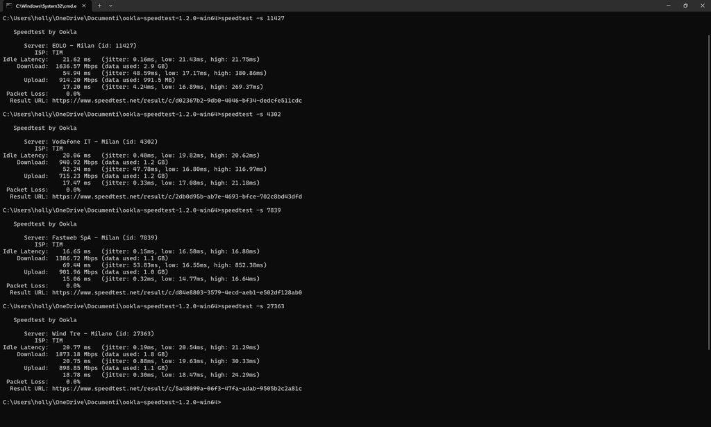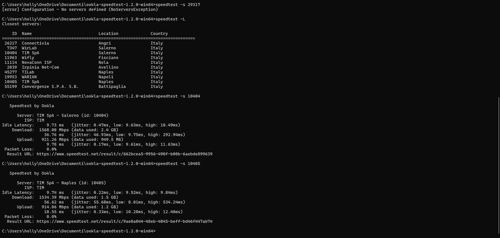 TheMarsican allora ecco i test appena fatti...soltanto sul server 27363 (Wind Tre Milano) ho un test accettabile, sugli altri server (ho testato anche TIM Salerno, la città in cui vivo, e TIM Napoi che solitamente mi davano i risultati migliori) come puoi vedere ho velocità ridicole, ridicole soprattutto se confrontate con quelli dei primi due giorni. Praticamente giovedì e venerdì scorso avevo oltre 2 Ghs ovunque e a qualunque orario. Ma poi notavo dei ping abbastanza alti o sbaglio?