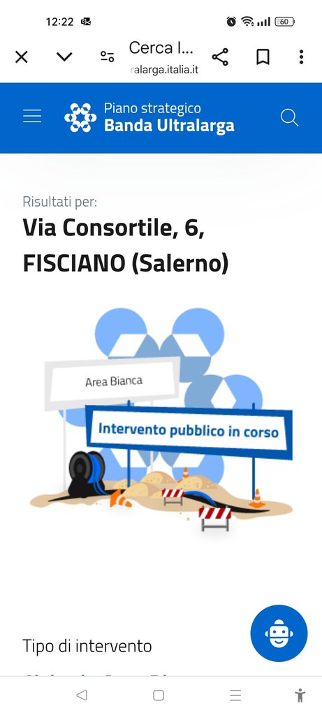 TheMarsican [cancellato] non lo sapevo comunque il mio indirizzo era stato cambiato qualche anno fa Quando? Perchè devi considerare che l'ultima Consultazione Infratel che comprende i civici bianchi è del 2021. Quindi probabilmente l'indirizzo ''nuovo'' viene indicato come area bianca perchè non è mai stato presente nelle consultazioni. Utilizza quello vecchio.