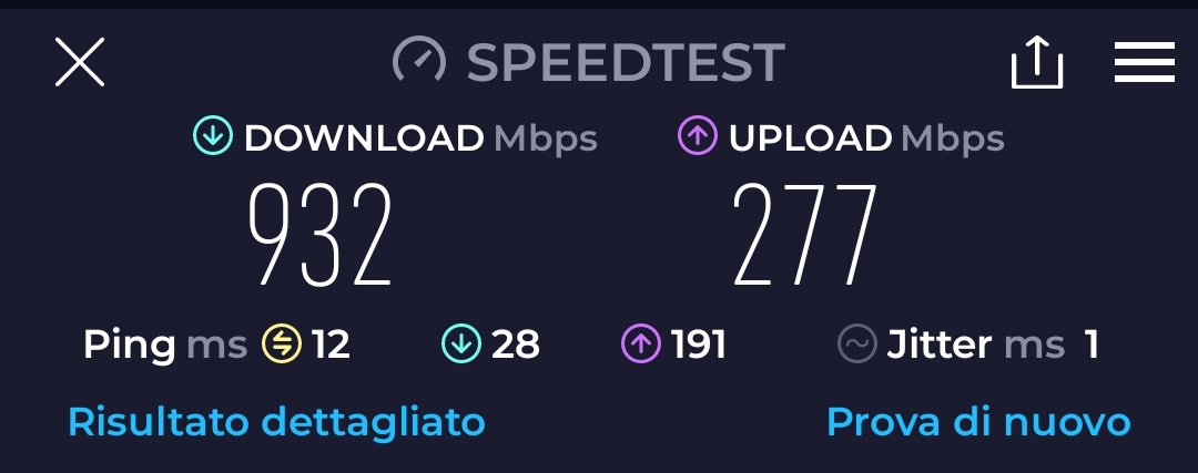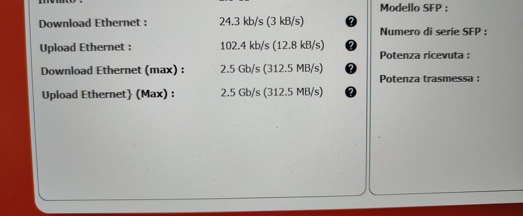 Se dovessi collegarci un ONT esterno 1G, o un altro dispositivo, via cavo Ethernet verrebbe mostrato che il flusso è 1000Mbps in download ed in upload.