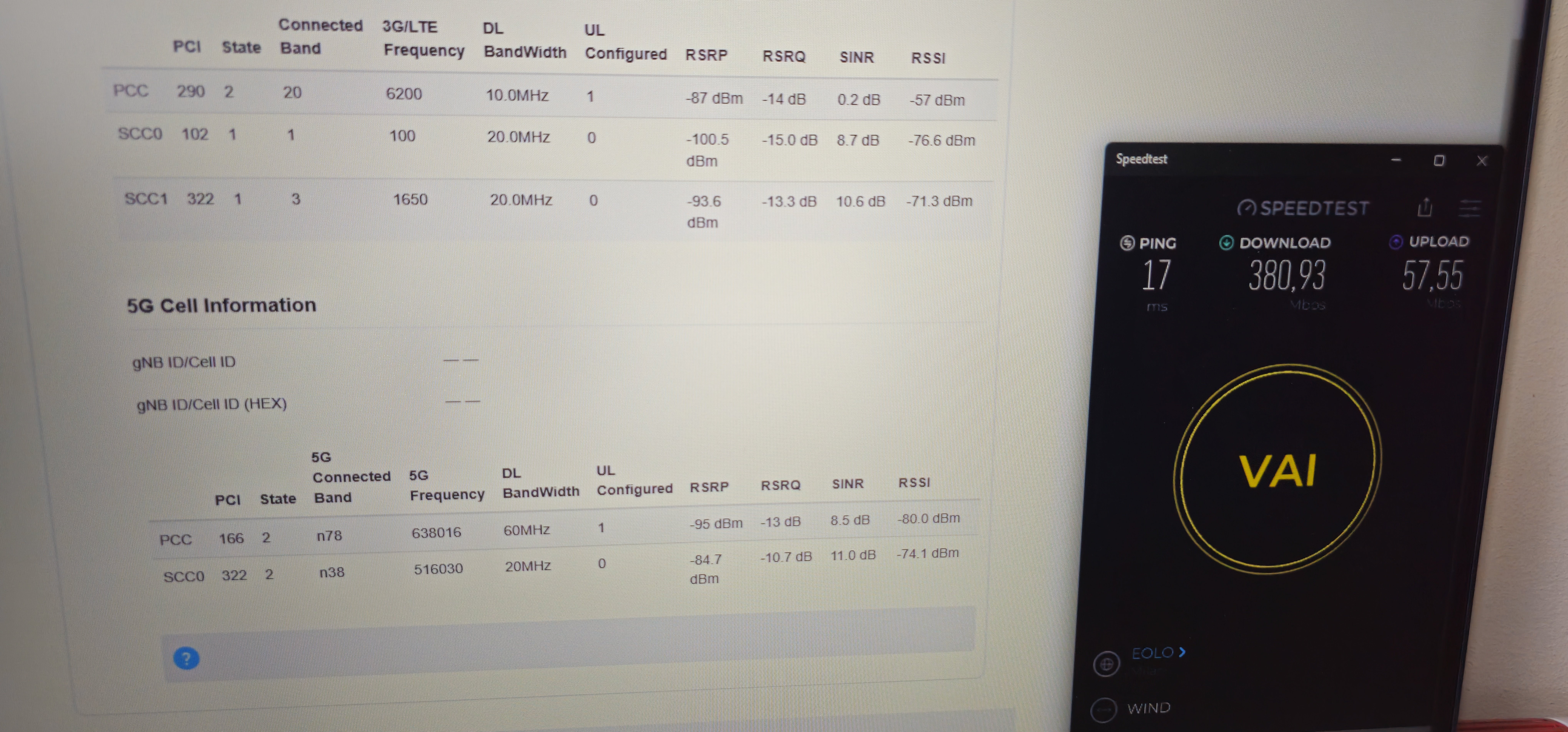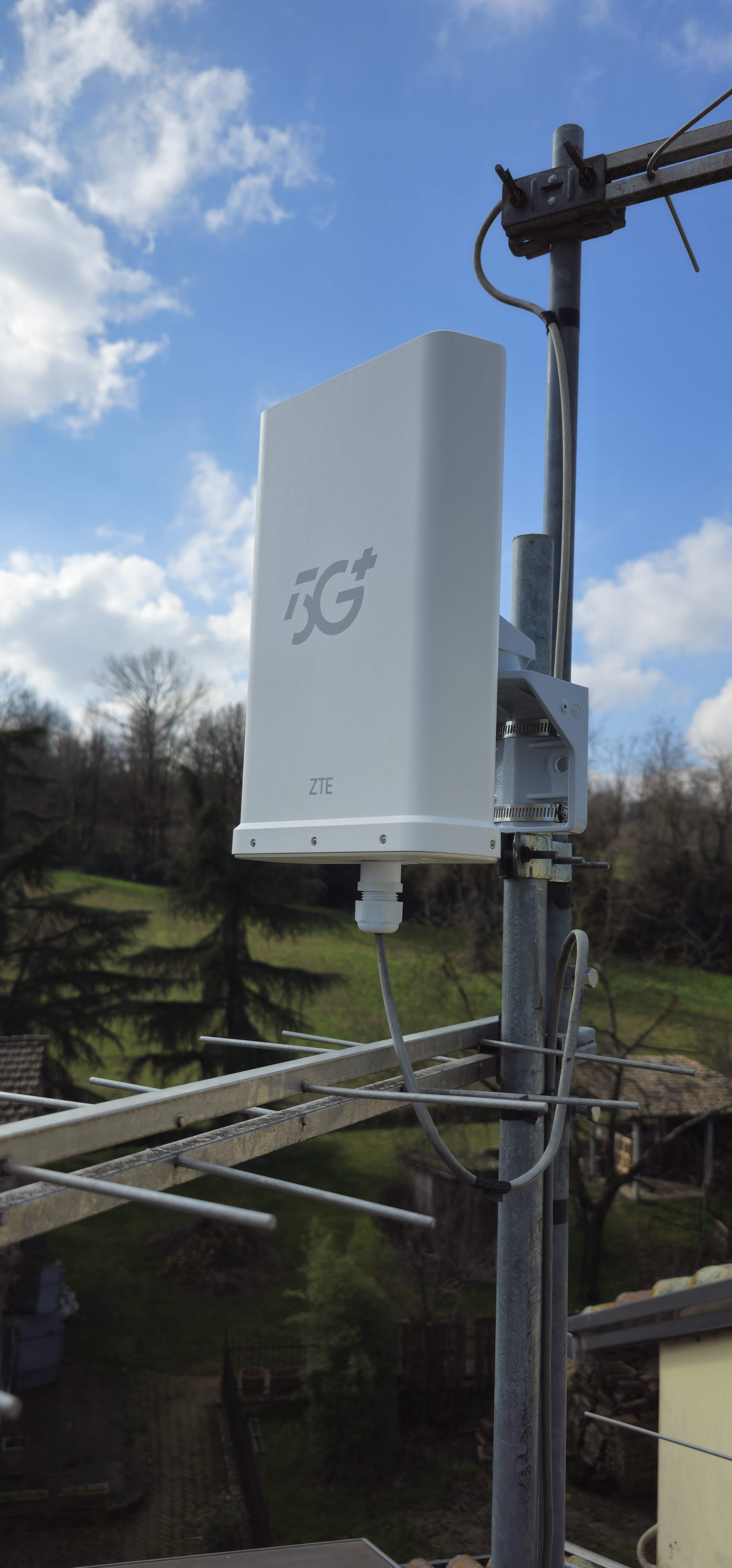 Luso84 Eccomi ragazzi...MC889a PRO montato..posizionato esattamente dov'era lo Zyxel NR7302. Ho riutilizzato le fascette dello Zyxel perchè quelle di ZTE sono troppo grandi per il mio palo ed ho dovuto spessorare il palo perchè nemmeno quelle di Zyxel lo tenevano fermo (supporto troppo grande/largo... (ho perso più tempo fare questo che altro) 😃 Prime impressioni, rispetto a NR7302, sono abbastanza simili, come guadagno si sente leggermente, meglio sulla N78 (sulla N38 era quasi uguale)...sulla N78 sono passato da RSRP -98 a RSRP -93 / 94...il sinr uguale (più o meno). Come velocità speedtest è poco più veloce dell NR7302 (ma ho notato che sale molto più velocemente sullo ZTE) in upload è fenomenale! in upload sono passato dai 25...30 mega dell' NR7302 ai 60...65 dello ZTE (il doppio) con le stesse bande...secondo me lo Zyxel faceva fatica a fare UL NR. Purtroppo mi si collega ad una B7 a 14km e non quella "vicina" a 5,5km ma per fortuna non mi prende la N78 a 14km come faceva FWA710 e qualche volta NR7302 ma rimane fisso (cosi sembra) sul quella vicina..ma anche se prende la parte 4G dei 14km la velocità è alta (forse perchè usa la N78 vicina)....su NR7302 purtroppo quando si collegava al 4G lontano o la N78 lontana (intersite), faceva letteralmente schifo e non so perchè (FWA710 non dava questo problema) non andava niente (massimo 50 mega e non so perchè)....con ZTE ed FWA710 non ci sono problemi... Dopo averli provati tutti posso dire che il vincitore (per mia esperienza) a mani basse è MC899a PRO...secondo posto metto NR7302 e poi FWA710 (al terzo posto perchè non fa tante combo tipo non va la N3). Voto 10 per ZTE che mostra i valori di tutte le bande in tempo reale e precisi...Gli Zyxel sono davvero sballati (per la parte 4G avevo tutto negativo). Lati negativi di questo ZTE..a parte tutto il supporto e le dimensioni enormi sono: Non si può fare cell lock della parte LTE ma solo 5G (se ho visto bene) e la password di accesso non si pù mettere qualcosa di corto...sembra che bisogna accedere al server della NASA