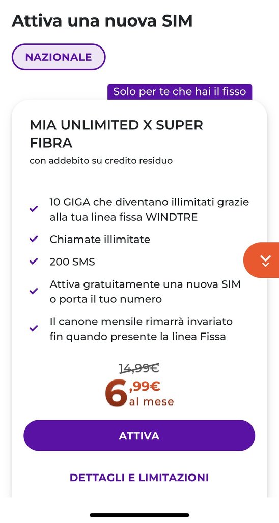 ho attivato la superfibra di wind, incluso ho visto che c'è la possibilità di avere i giga illimitati per 3 sim wind.