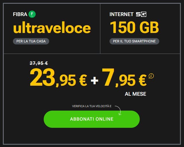 Avrai fisso + mobile (150 GB e minuti illimitati) a 31,90 euro.