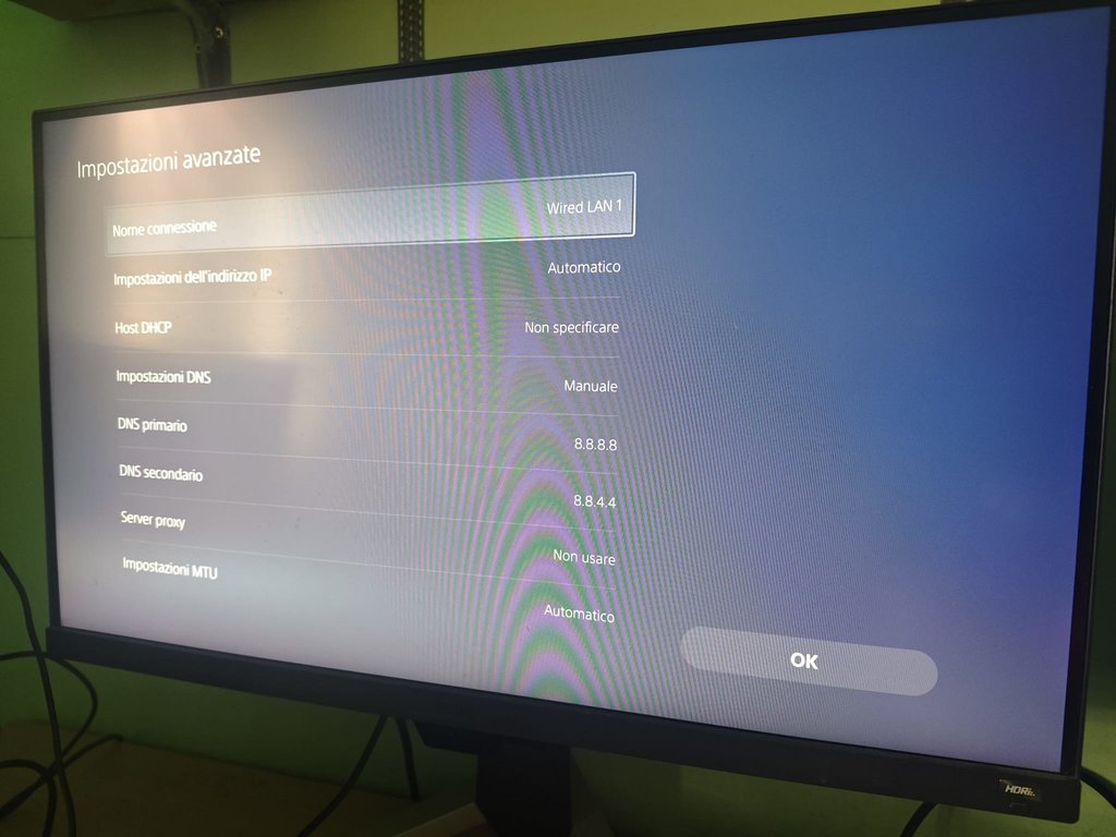 Tuttavia, ho notato del lag nei giochi (segnatamente, su Call of Duty). Ho provato come DNS sia quelli di Google che quelli di Cloudfare, di solito questi ultimi sono i migliori, ma non ho notato cambiamenti significativi. Allego le mie impostazioni di rete da PS5 (sono collegato via cavo):