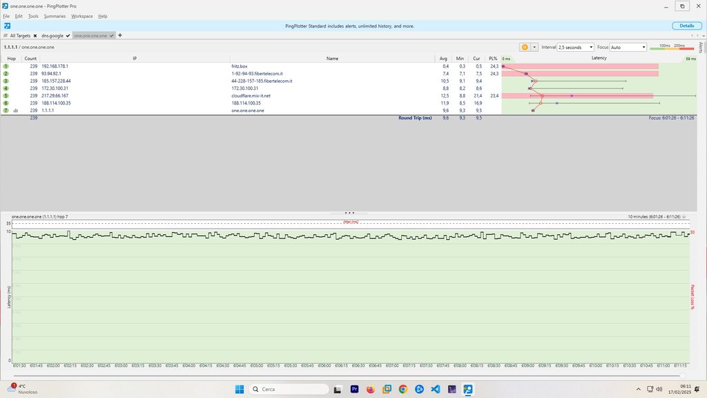 Ieri poi ho anche scaricato ping plotter e ho notato che risultava della packet loss già al Fritz Box (cosa che succedeva nell'ultimo periodo anche in FTTC):