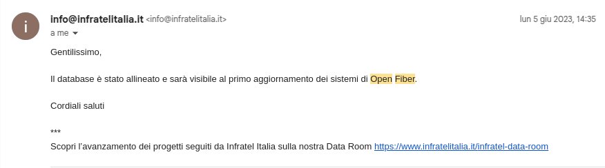 Dopo ovviamente se l'infrastruttura non è pronta o mancano delle lavorazioni importanti da parte di OF, non è che l'isp può andare a completare lui l'infrastruttura per te.