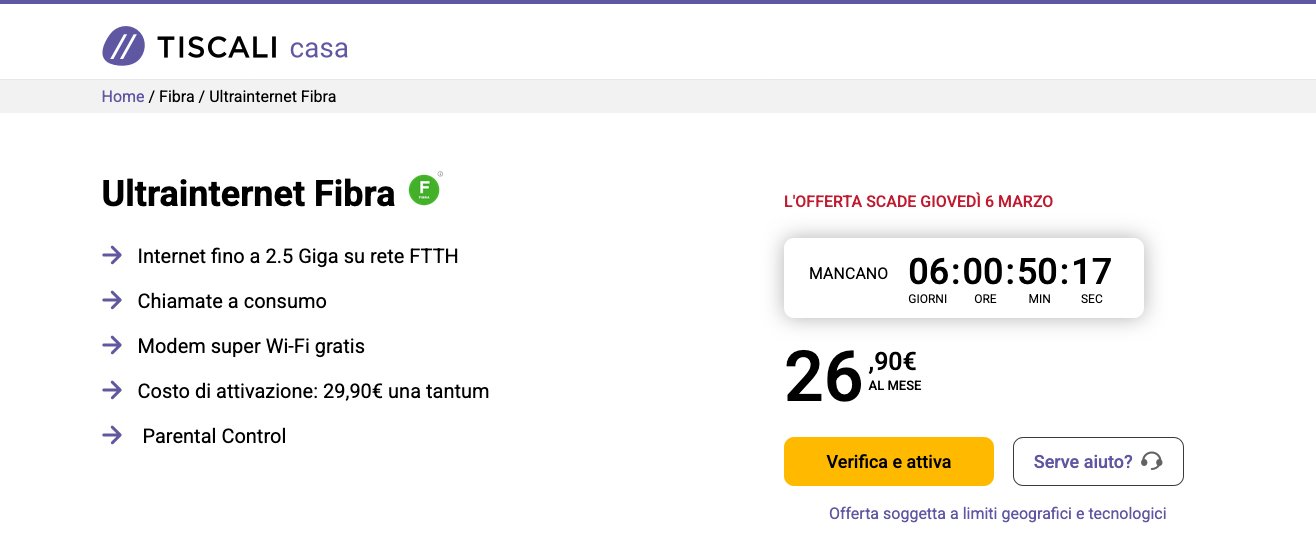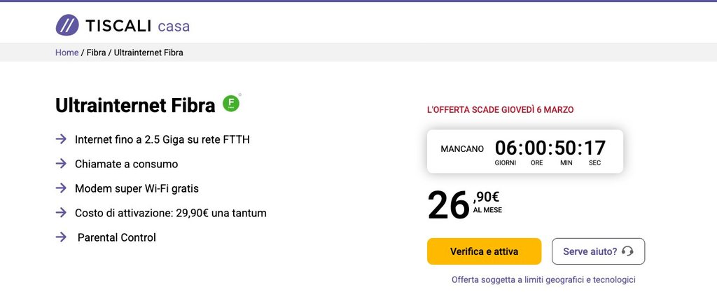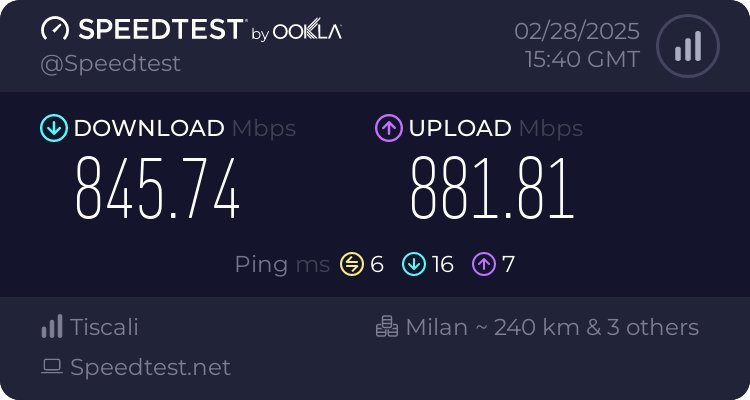 Buongiorno, mi è stata installata una linea FTTH Tiscali 2.5gbps circa 1 mese fa.