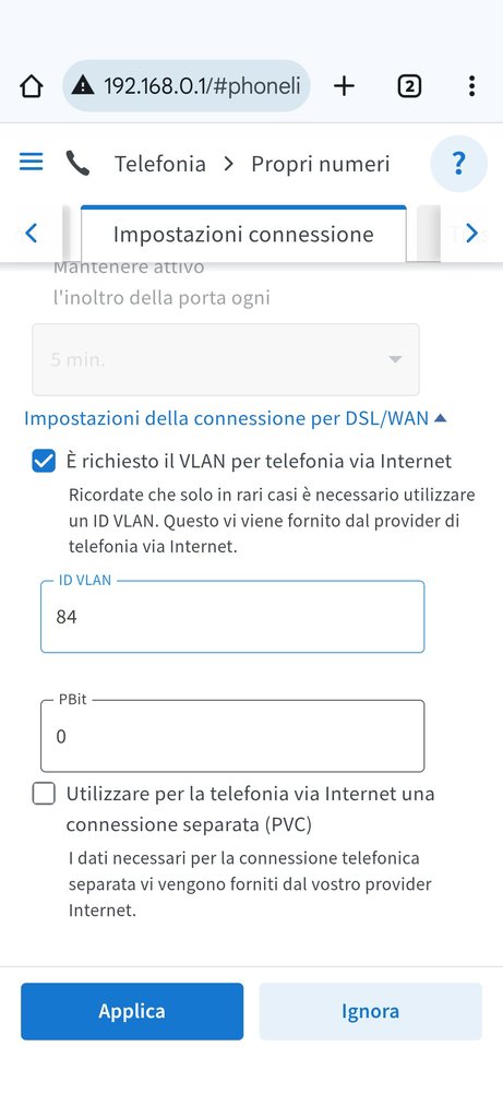 Seleziona casella "È richiesto il VLAN..." ed inserisci 84 nel campo sottostante.
