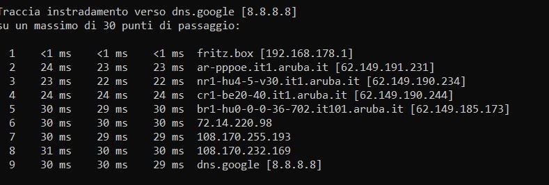 Google va a Milano, mentre CF (così come quad9) in IPv4 passa al Namex. In IPv6 passa per il MIX: è un "glitch" di cui in Aruba sono a conoscenza, suppongo risolveranno una volta migrate su IT4 anche le linee Open Fiber.