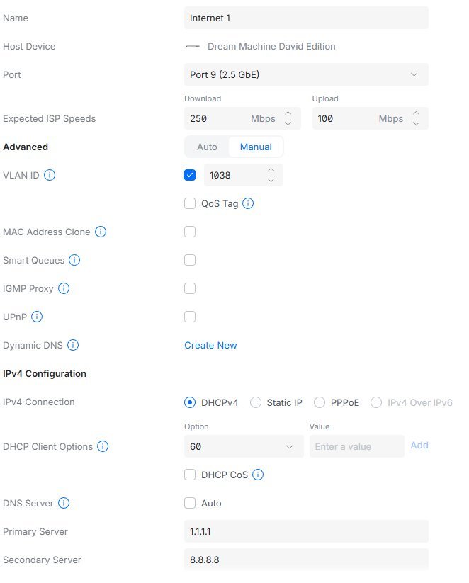 visto che l'antenna esterna usa quegli indirizzi. Poi la udm usando la vlan 1038 reperisce l'ip pubblico