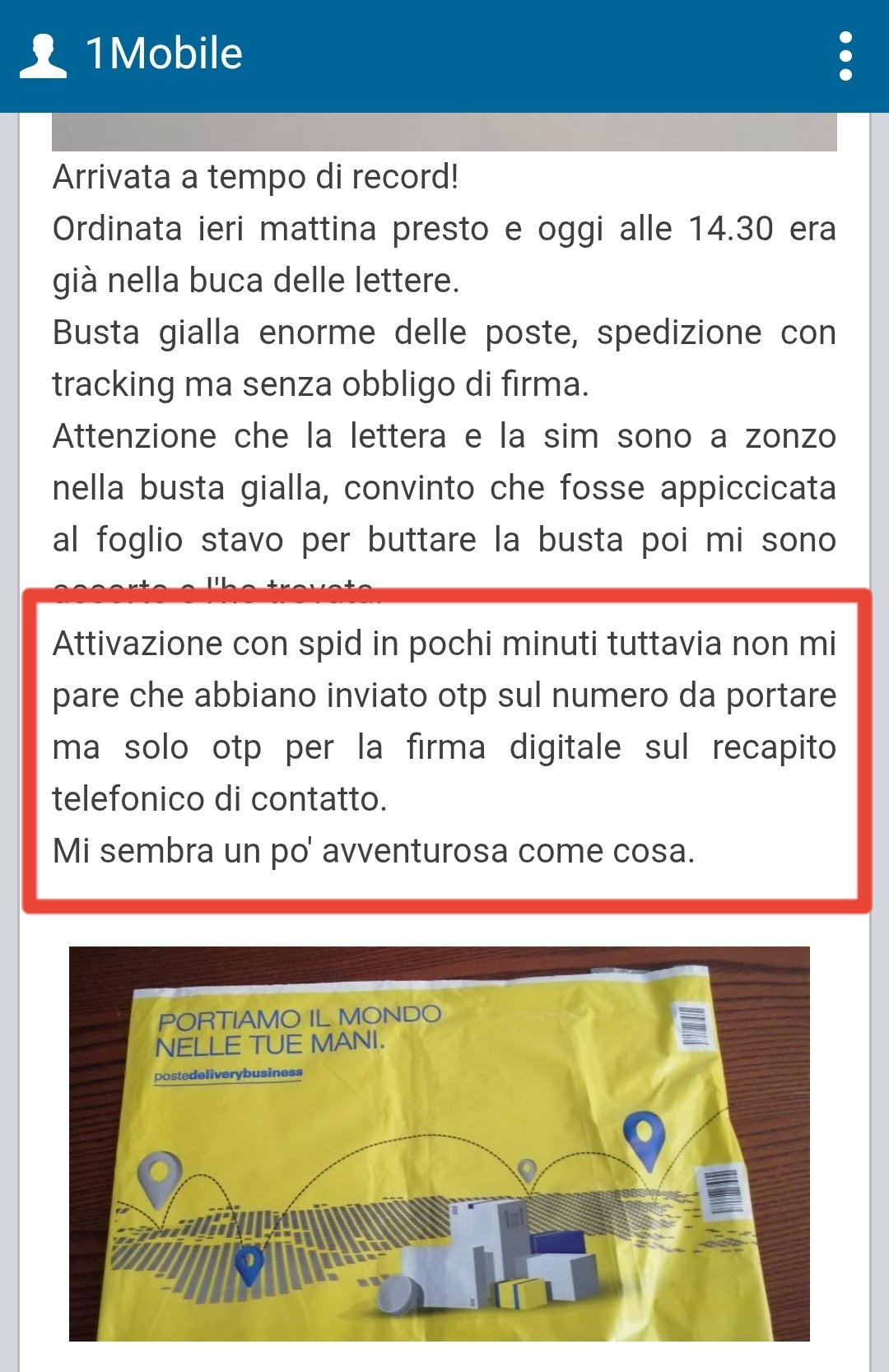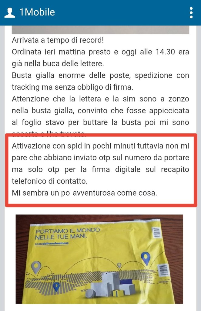 Kvix digitalboy santo cielo, @Kvix questa è gravissima come cosa. Però io sono abbastanza sicuro che le due portabilità che ho fatto di recente vs 1Mobile l'otp sul numero da portare me lo hanno chiesto. Infatti avevo tentato la sera, ma non avendo con me la sim non potetti farla. Ad ogni modo, se fosse, male male Che ti devo dire, 2 su due non è una casualità... A me è arrivato solo l'otp per la firma digitale del contratto ma sul numero di contatto e non su quello oggetto di mnp. Magari se qualcun'altro attiva possiamo verificare...