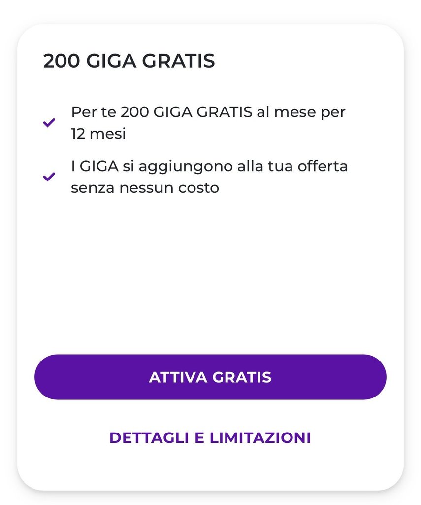 Jeff9 b1ue questa non è un'offerta vera e propria. È un'opzione che aggiunge 200giga gratis per 12 mesi, nient'altro