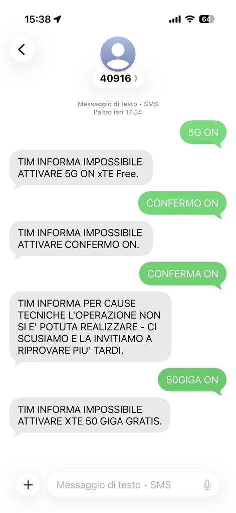 aeN Probabilmente è già assodato ma porto una conferma in più sulla TIM Proponi 4.99, nessun problema di attivazione e portabilità (da coop voce) nonostante non sia cliente rete fissa 🙂 Peccato per le opzioni gratuite (5G ON, CONFERMO ON ecc...) che al momento risultano non attivabili: Premi per mostrare Premi per nascondere
